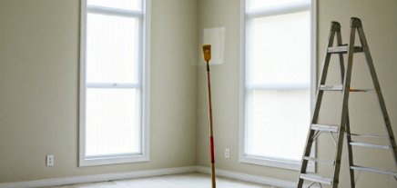 Application de peintures, papiers peints et autres éléments décoratifs.