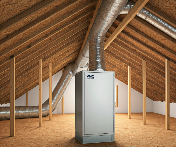 Pour un maximum d’efficacité, notre VMC double flux récupère la chaleur de l'air extrait et la restitue à l'air frais entrant, garantissant ainsi un confort thermique tout en réduisant vos factures d'énergie.